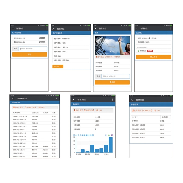 ●實(shí)現(xiàn)微信在線自助繳費(fèi)。 支付方式支付微信支付。查詢(xún)近6個(gè)月的繳費(fèi)記錄。統(tǒng)計(jì)顯示近12個(gè)月的用電量信息。歷史抄表記錄查詢(xún)。