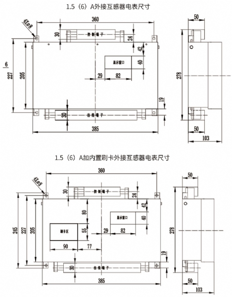 ◆ XY-85型和XY-80型工業(yè)用互感器大電流遠控、遠抄及刷卡多用戶電能表尺寸(單位:mm)。